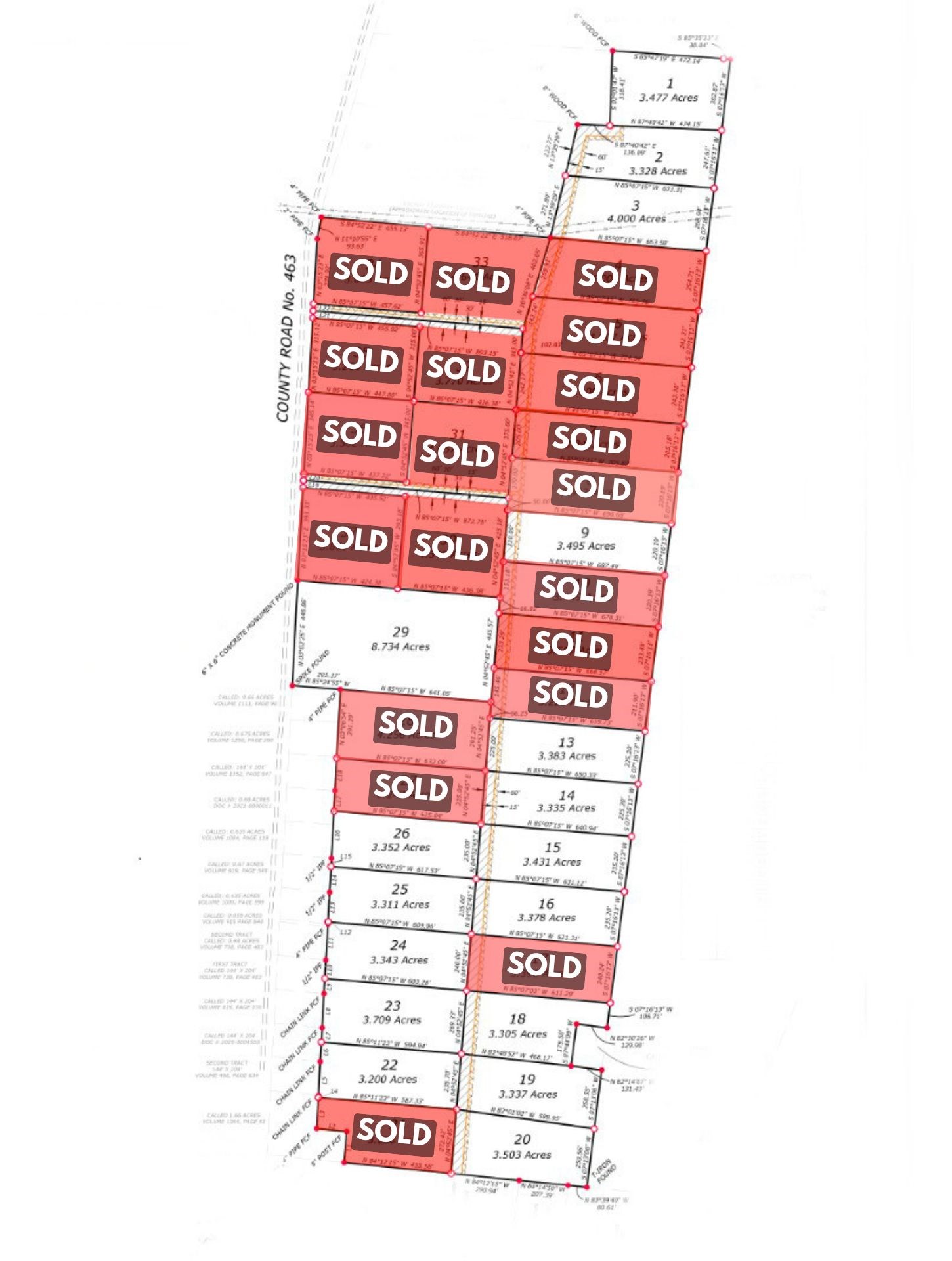 Upon closing, we recommend applying with the County for your 911 Address and Culvert Permit so that you can establish a driveway on your property. Call Limestone County Road and Bridge and provide a copy of your deed and survey marked with your desired location for a driveway.