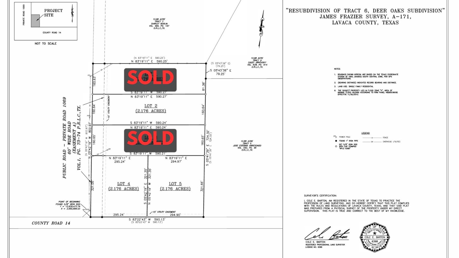Five new properties have just been approved for Subdivision in Lavaca County. Each new lot is now flagged, boundary-staked and publicly recorded for the first time.