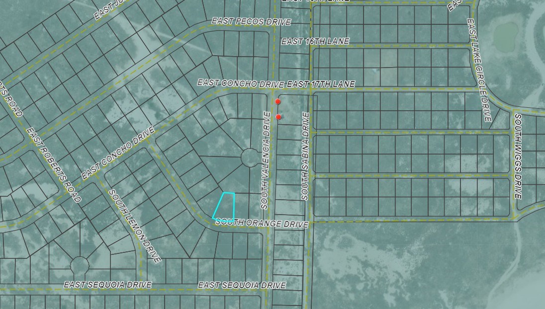Take S Rex Allen Jr Dr south towards Twin Lakes Golf Club, turn right on Lake Circle Dr, turn left on E 17th Street, then turn right on S Valencia and the first left will be S Orange Dr. The lots are the 3rd and 4th lots on the right