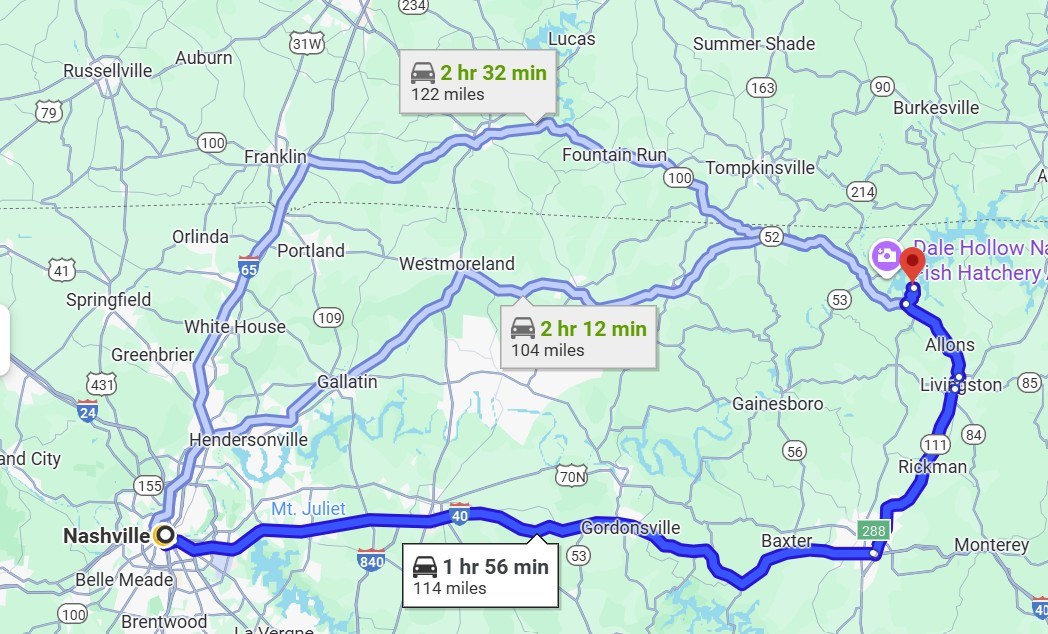 Though tucked into tranquility, Clay County lies within about a two-hour drive of major cities like Knoxville, Bowling Green, Louisville, and Nashville. Specifically, the drive from Nashville to Clay County is approximately 92 miles, just under two hours.