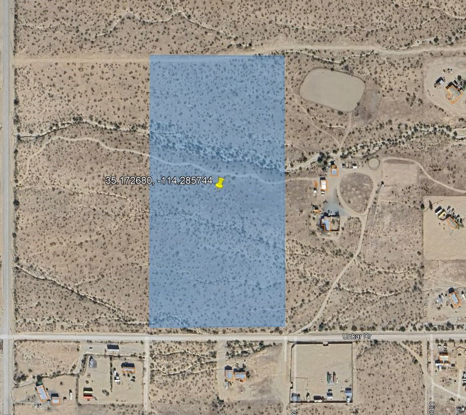 The property features power and water available nearby, making it easy to start building or setting up right away. Easily accessible via Unkar Dr, it offers flat, open desert terrain that captures the beauty and tranquility of desert living. Picture waking up each day to sweeping landscapes and panoramic views that define the Mohave Desert's allure.