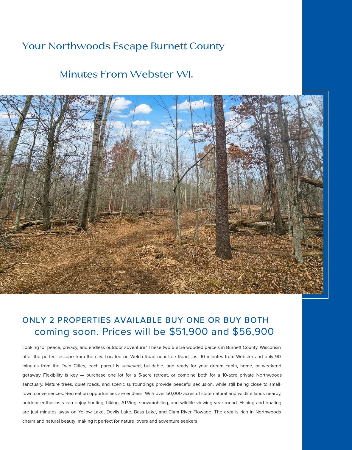 Burnett County, Wisconsin offers the perfect escape from the city. Located on Welch Road near Lee Road,