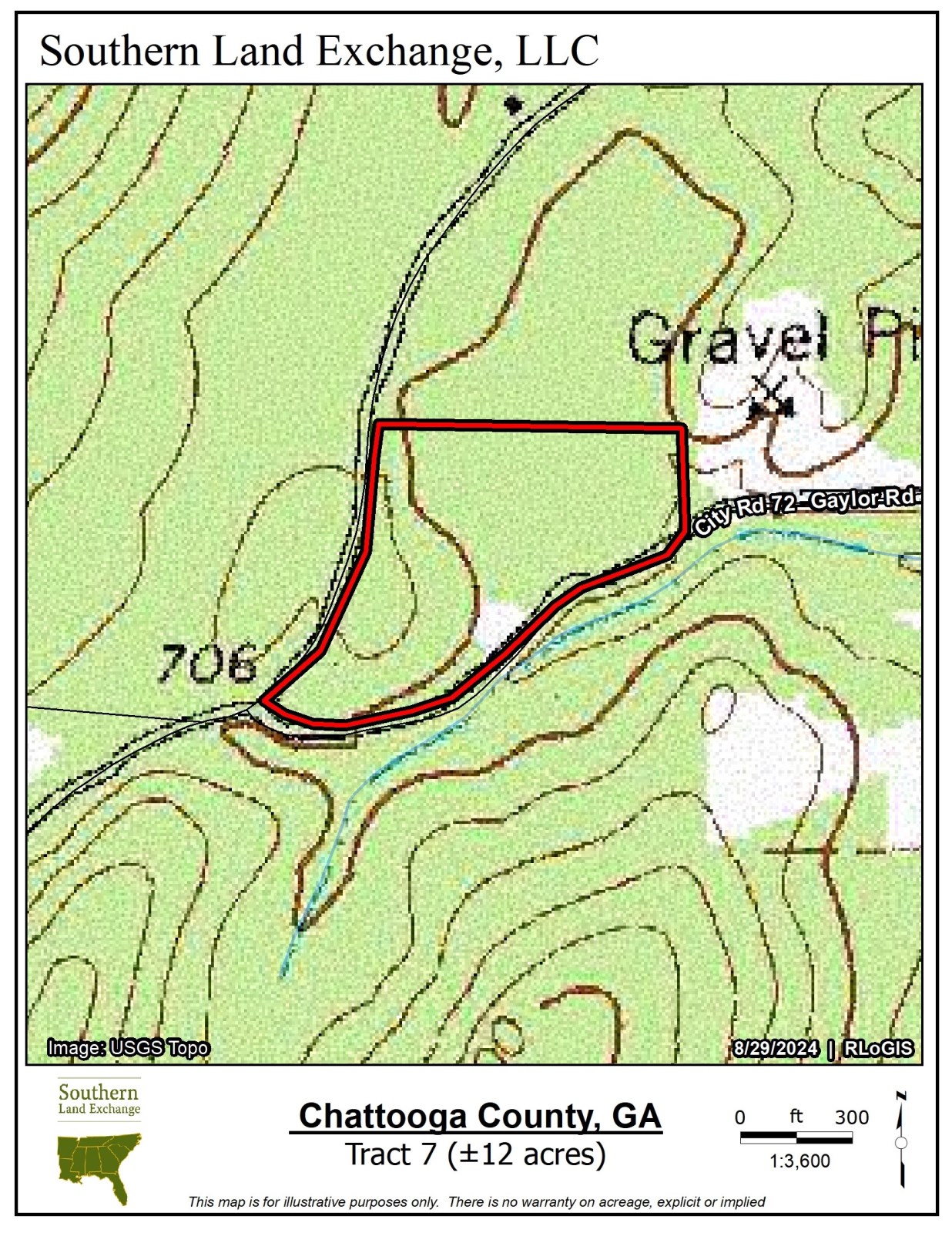 From Downtown Rome, Ga proceed west on Ga HWY 20 for approximately 13 miles. Turn right (north) on GA-100 N. Continue on GA-100 N for 6.5 miles then turn left on Holland Chattoogaville Rd. in 5 miles take a right at the stop sign onto GA-114 E. in half a mile take a left on Sardis Church Rd. In just a few hundred feet, make a right on Gaylor Rd. At the stop sign at the end of Gaylor, take a left. In about half a mile, the property entrance is on the left. Please use coordinates for exact gate location.