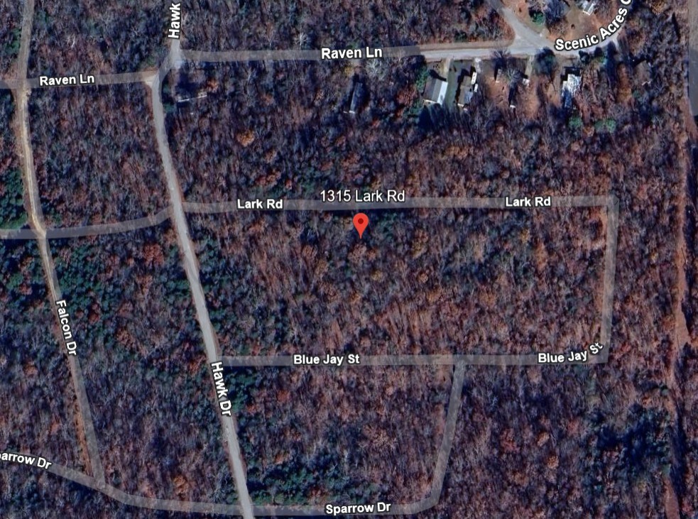 • Road Access: Hawk Dr is paved, but Lark Rd has only been cleared (see photos)