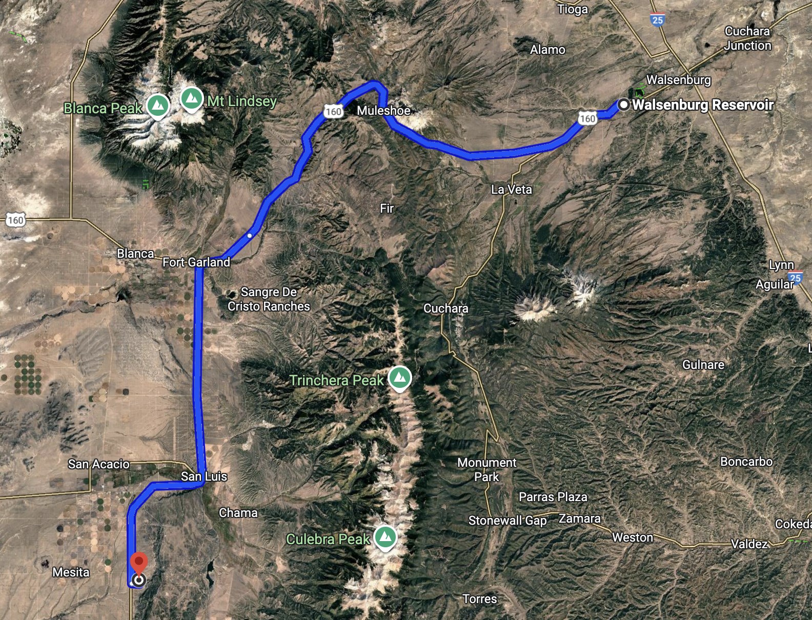 Head west on US-160 W toward Sangre De Cristo Ave/Spanish Peaks Dr