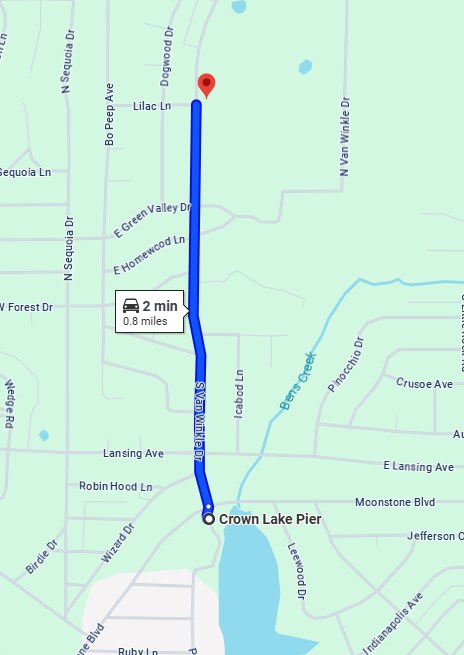 Straight shot to Crown Lake - 0.8 miles down N Van Winkle Dr