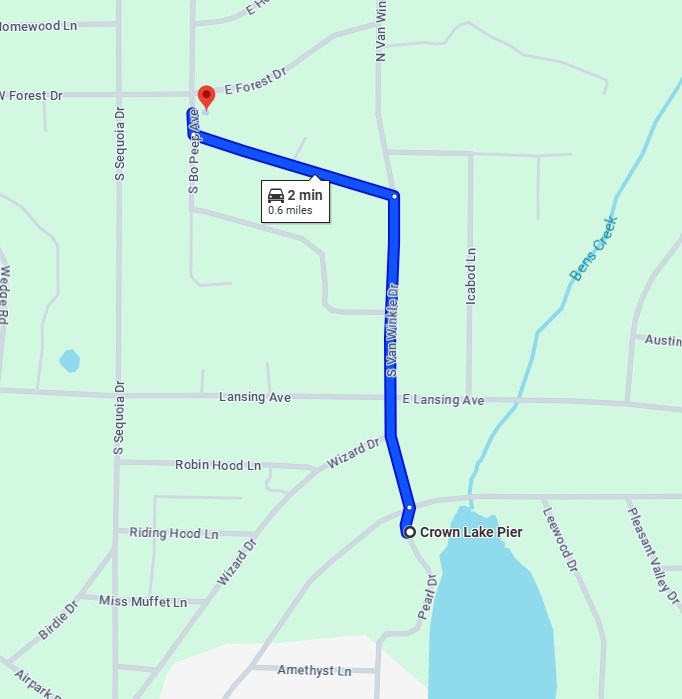 Distance to Crown Lake Pier: 0.5 miles