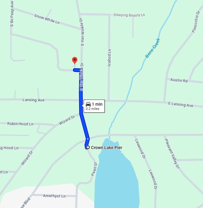 Distance to Crown Lake Pier: Two blocks