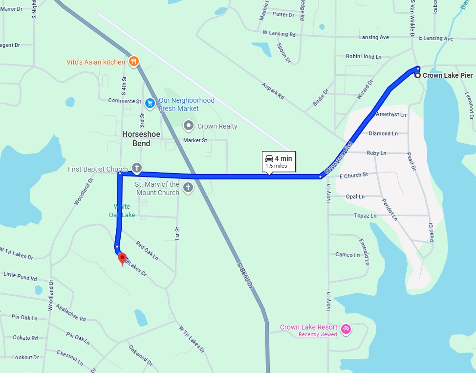 COMPREHENSIVE Recreation Within Easy Reach: While convenience matters, so does having activities that make life enjoyable and engaging. This location provides exceptional access to Horseshoe Bend's recreation offerings without requiring long drives or complicated logistics. The public swimming pool and Turkey Mountain Golf Course sit just 2 miles away for summer swimming and year-round golfing. The beach at Crown Lake Resort is only 1.2 miles away, providing sandy swimming areas and lakefront amenities. Multiple lake access points offer fishing, boating, and water activities. Downtown Horseshoe Bend provides parks, and community gathering spaces. This comprehensive recreation access means you can maintain an active, engaged lifestyle without the expense of resort memberships or the hassle of traveling significant distances. Everything you need for an enjoyable retirement or relaxed lifestyle sits within a few miles of your front door.