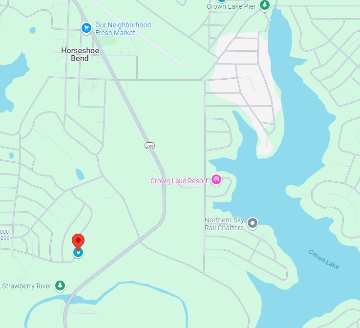The gently hilly terrain adds character and privacy, creating an ideal setting for a future home, cabin, or vacation rental. With low annual taxes and no Hoa, ownership stays simple and affordable. The location is particularly attractive for investors seeking to build an Airbnb or long-term vacation rental, as it sits close to both Crown Lake and the Strawberry River-two of the area's most popular recreation spots.