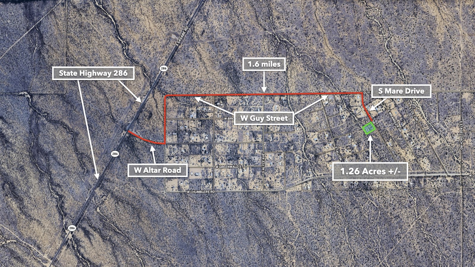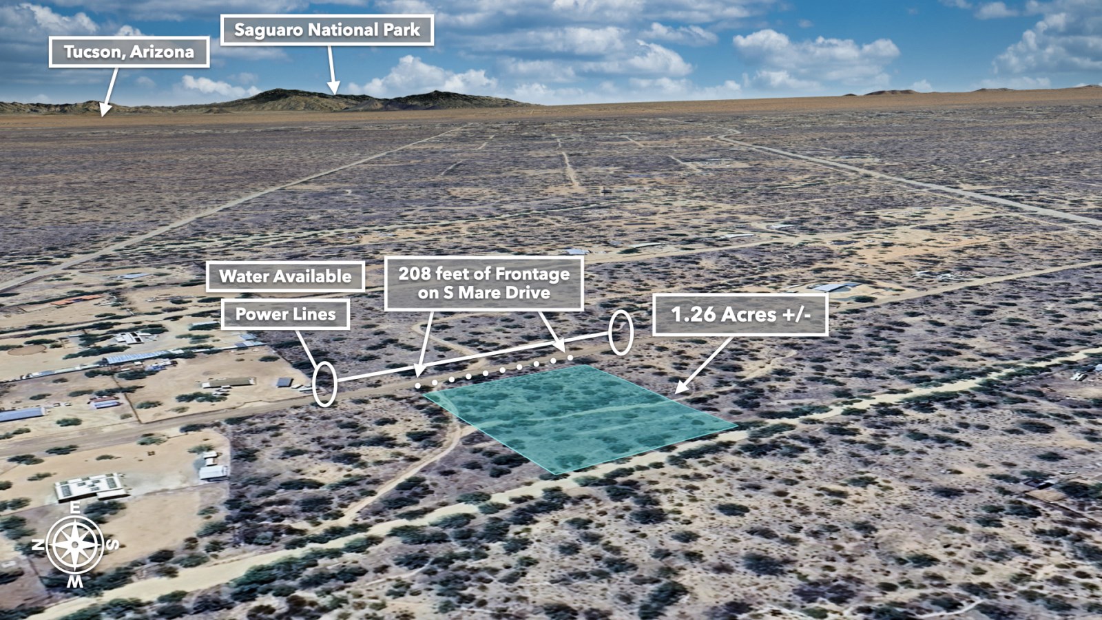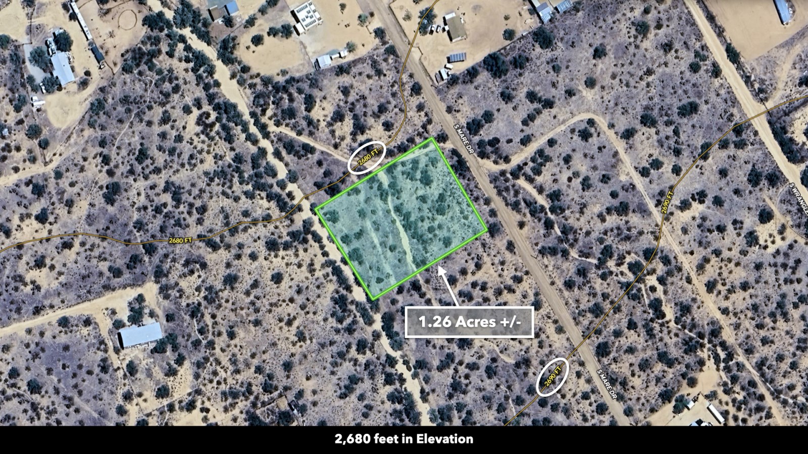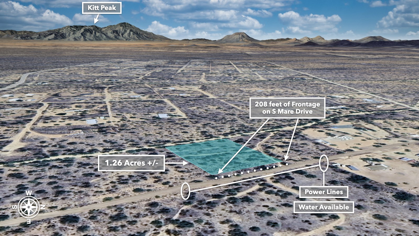 With 208 feet of Road Frontage and Power available along Mare Drive, practical considerations are already in place. Private Water Service is Available with Water Lines running near the Property. The Property's Southwest boundary even features natural drainage, essential during those refreshing desert rains.