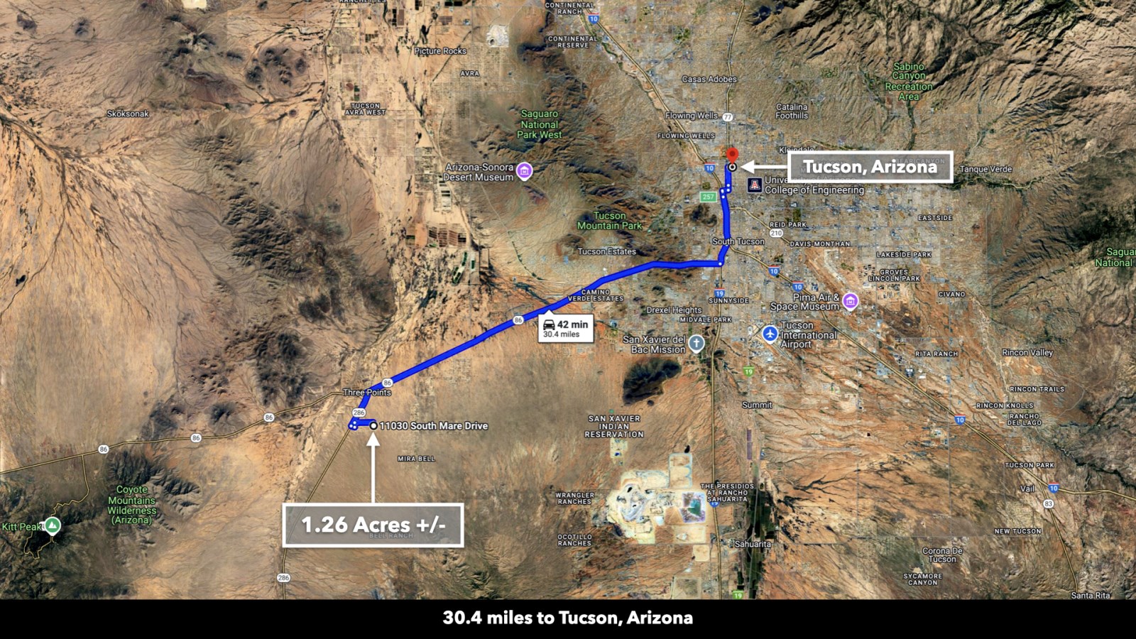30.4 miles to Tucson, AZ : Population 1,043,000