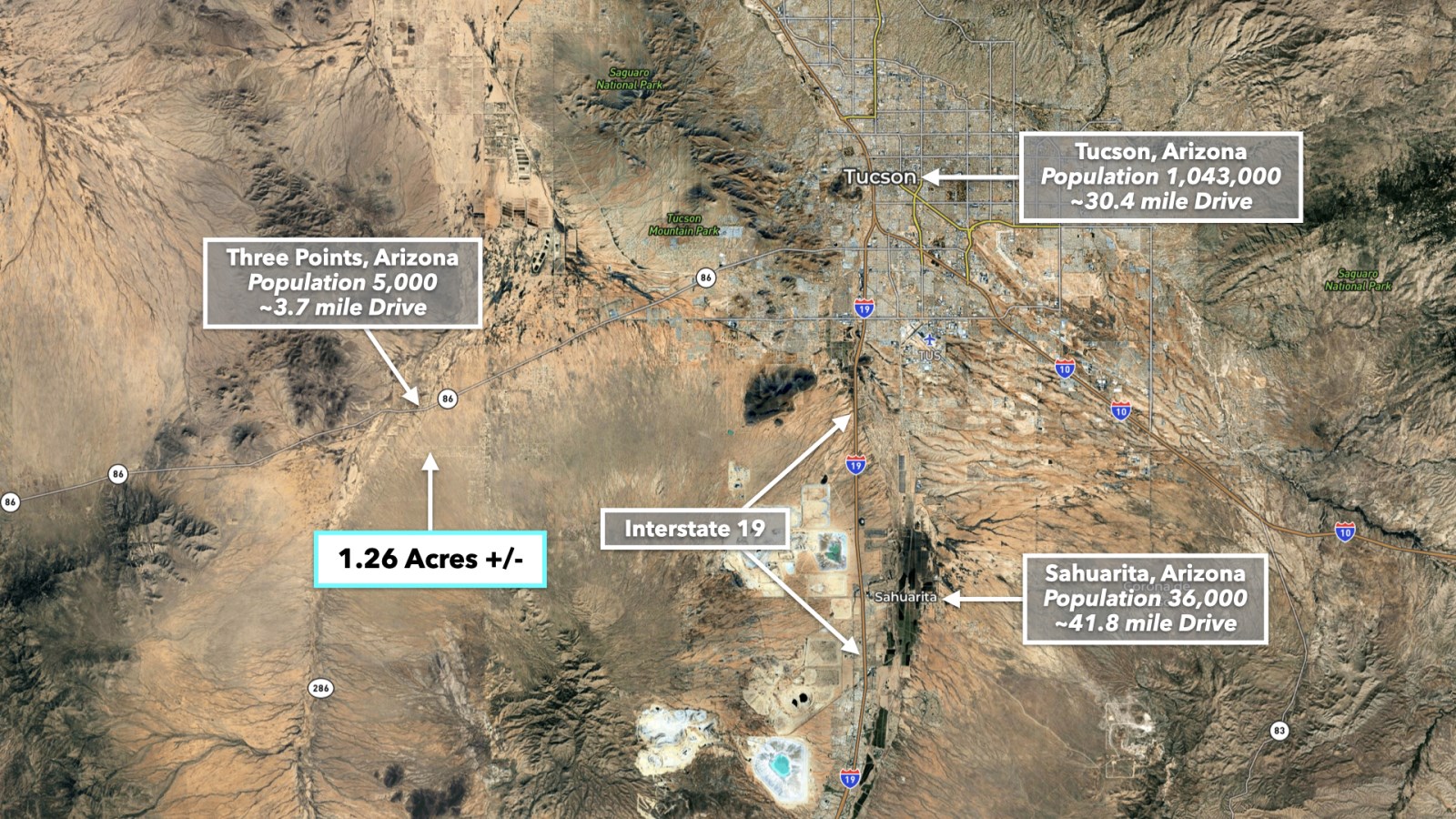 3.7 miles to Three Points, AZ : Population 5,000