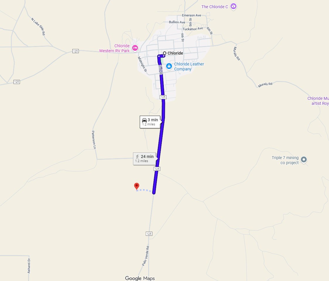 From Chloride, head south on County Road 125.