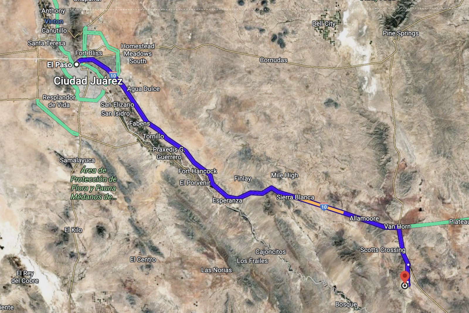 Follow I-10 E to Frontage Rd in Van Horn. Take exit 140A from I-10 E