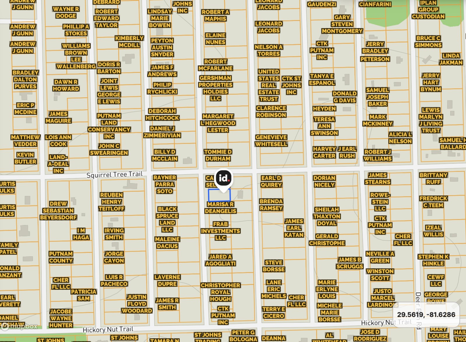 GPS Coordinates (4 corners): 29.562275,-81.630371