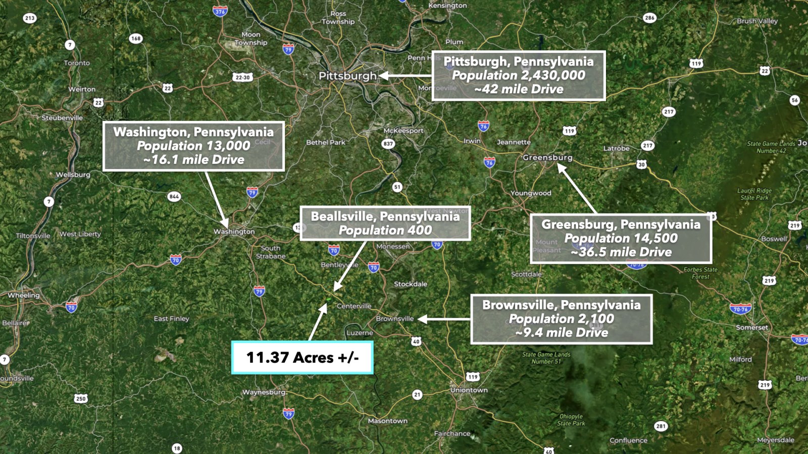 42 miles to Pittsburgh, PA : Population 2,430,000