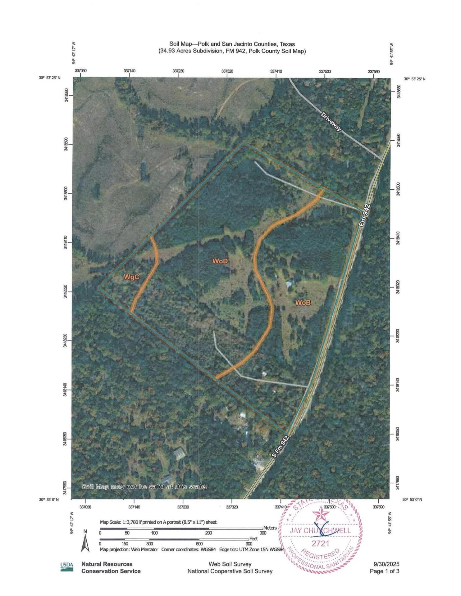 Soils on this property are primarily Woodville Fine Sandy Loam with 1 - 5 percent slopes. The Northwest corners of Lots 5 and 6 have access to Wiergate Clay (roughly 2 acres worth), which is ideal to excavate for use in developing ponds.