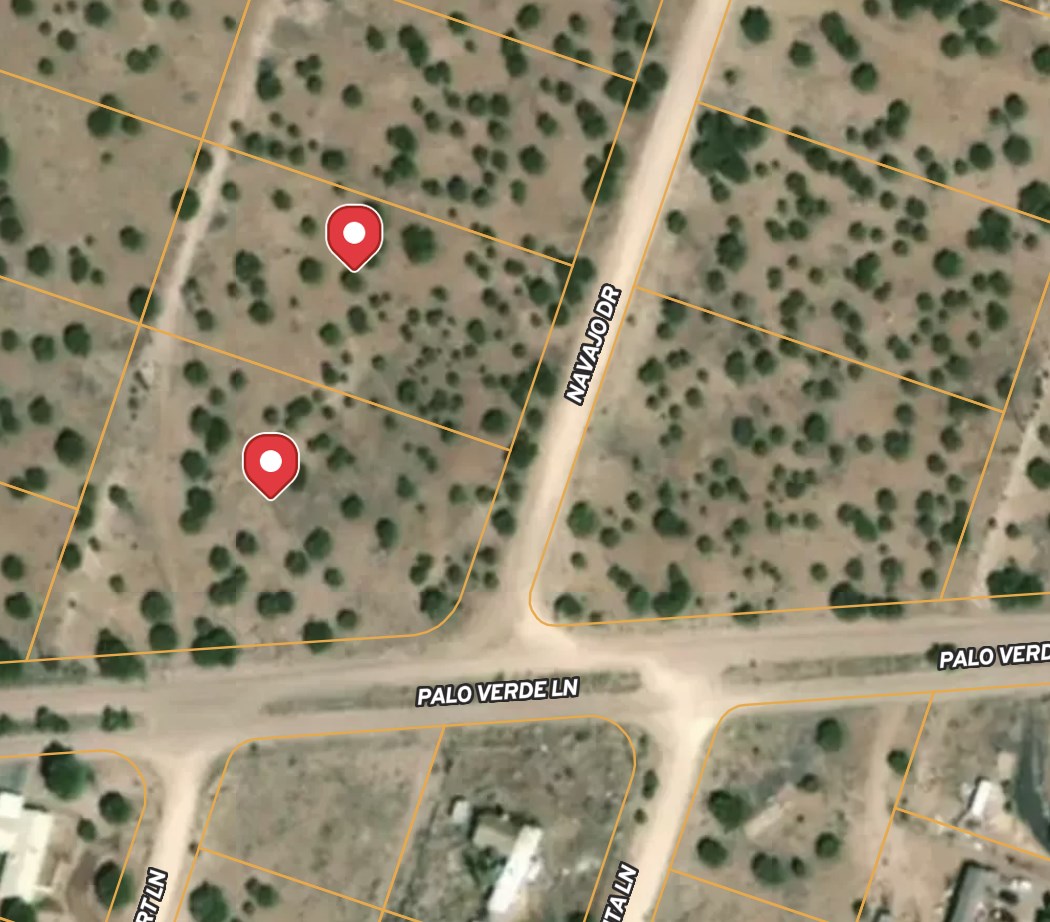 This property includes two adjacent parcels on a dirt road in Concho Valley Unit 1. The lots are zoned for single-family residential use. RVs may be used temporarily during construction but not for full-time living. Power lines are located directly along the property line, offering simple utility connection. A private well or water tank system will be required, along with a permitted septic system. The land is outside the floodplain and has a gentle slope ideal for grading and foundation setup.