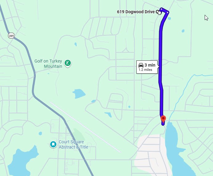 Take Peace Valley Road and Day Road to Dogwood Drive in Horseshoe Bend for a little over 8 miles